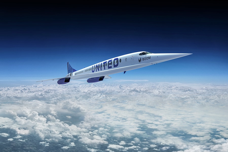 A rendering provided by Boom Supersonic shows Boom Supersonic’s plane. United Airlines said Thursday, June 3, 2021, that it had committed to buying 15 planes from the company. Image: Boom Supersonic via The New York Times