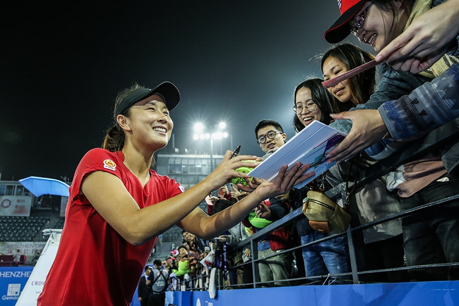 Peng Shuai with fans after winning a match during the 2019 W.T.A. Shenzhen Open in Shenzhen, China. Image: Visual China Group via Getty Images/Visual China Group via Getty ImagesCredit