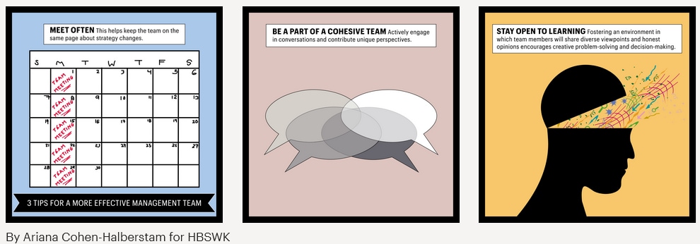 Also, it’s important to remember: A team’s effectiveness is subject to decline if an organization doesn’t remain vigilant and ensure the team continues to evolve and grow. After all, the company’s circumstances are bound to change, requiring new roles, and natural turnover in positions can decrease the capabilities needed to maintain an open discussion of issues. For that reason, continued investment in refining top teams is required.
