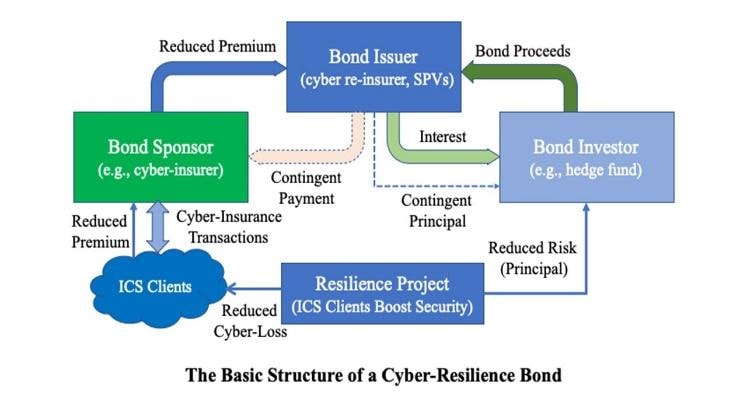 A resilience bond is a new ILS instrument, and quite like a CAT bond in insurance benefits, can be used to inject capital into the cyber re-insurance market apart from protecting cyber re-insurers from cyber-catastrophes. These bonds link insurance coverage with capital investments in cyber-resilience projects that reduce expected losses from cyber-catastrophes. To this end, the main difference between resilience bonds and CAT bonds is the former’s goal of capturing a portion of insurance value created by cyber-resilience projects governed by critical enterprise infrastructures (e.g., ICSs) in the form of a rebate and transferring them to bond sponsors. This happens in two steps. In the first step, the bond issuer, i.e., a re-insurer and/or a third party (that include independent cyber-risk experts), uses data-driven financial catastrophe models to judge the degree that a cyber-resilience improving effort by an ICS reduces expected aggregate cyber-losses. This degree contributes to the reduction in coupon, i.e., interest, payments to bond investors. In the second step, the cost savings from coupon rebates are distributed to bond sponsors, i.e., cyber-insurers, and subsequently to ICSs in the form of resilience rebates used to finance cyber-risk reduction investments. The difference adds skin to the game of ICSs to boost their security and reduce negative externalities—also paying fewer premiums.