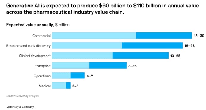 The Economic Value of GenAI in the Pharmaceutical Industry (Source: McKinsey& Co.)