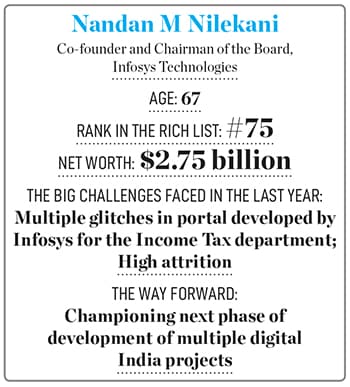 Infosys made him wealthy. Nilekani, with his personal wealth valued at $2.75 billion, is listed at rank 75 among India’s 100 top billionaires on Forbes’ list of the world’s richest people in 2022.