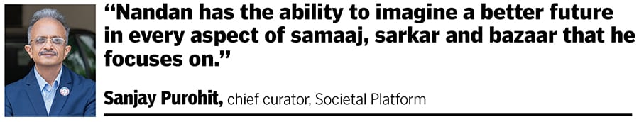 “Nandan has the ability to imagine a better future in every aspect of samaaj, sarkar and bazaar that he focuses on," says Sanjay Purohit, who led Infosys’s EdgeVerve unit, and was the chairman of the board of Infosys Consulting, the management and IT consulting practice within Infosys.