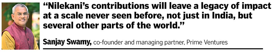 Nilekani’s contributions towards conceiving and implementing India’s digital building blocks—including Aadhaar, eKYC, eSignatures, DigiLocker, UPI, Account Aggregator, and the Consent Based Data Privacy Framework, “with a laser focus on high-volume-low-cost and mass inclusion, will leave a legacy of impact at a scale never seen before, not just in India but several other parts of the world," Swamy says.