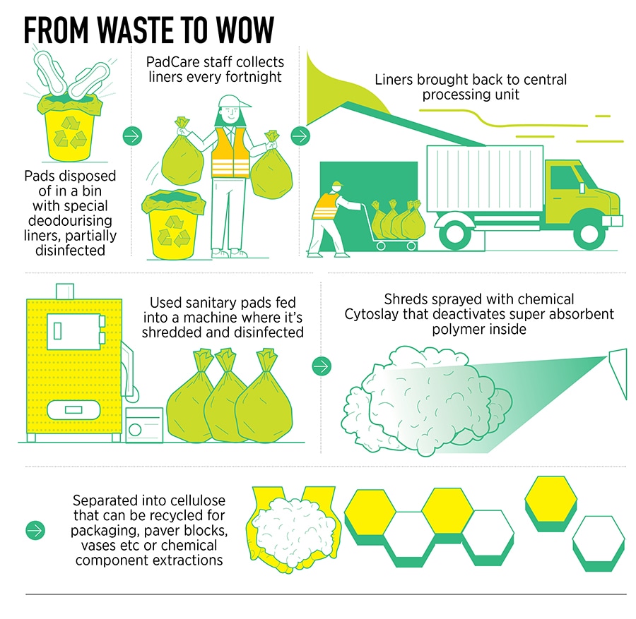 Along with the bins, PadCare has also developed sanitary napkin vending machines that operate on digital pay. For this, the company has tied up with a number of eco-friendly pad manufacturers. “When a woman disposes a sanitary napkin, chances are she will need another," says Dhariya. “This closes the circular economy loop at a local level."