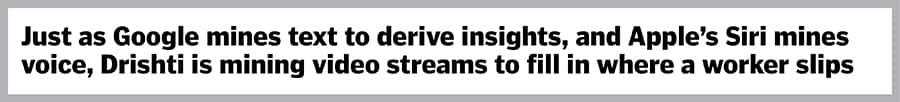 To put it differently: Just as Google mines text to derive insights, and Apple’s Siri mines voice, Drishti is mining video streams, explains Akella. “It’s never been done before because it’s a hard problem to solve. But the opportunity is huge."