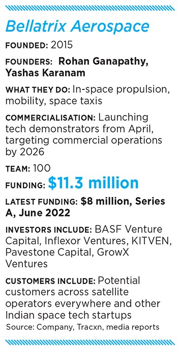 About the name Bellatrix, “it’s not to be confused with the Harry Potter character", Ganapathy says. The company is named after the star in the constellation Orion. “That’s where we want to head, maybe say 500 years down the line," he says.