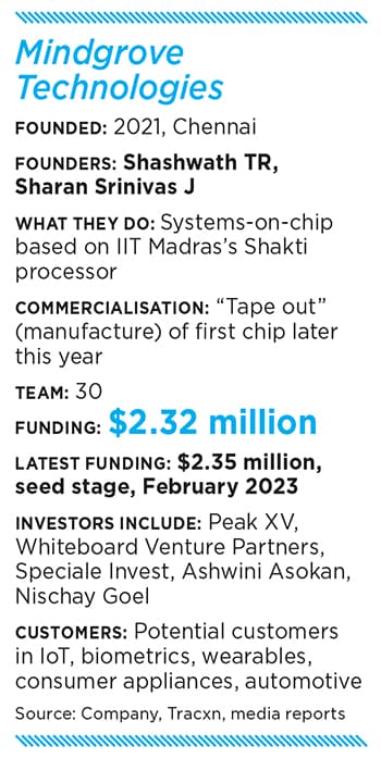 Shashwath TR and Sharan Srinivas Jagathrakshakan started Mindgrove, incubated at IIT-Madras, to build their SoCs for applications in IoT (Internet of Things), computer vision and automotive sectors.