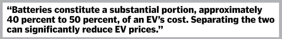 To make EVs more accessible, a crucial approach is separating vehicle ownership from battery ownership. This aligns with the analogy that when you buy a petrol car, you don’t pay for five years of petrol upfront. Batteries constitute a substantial portion, approximately 40 percent to 50 percent, of an EV’s cost. Separating the two can significantly reduce EV prices.