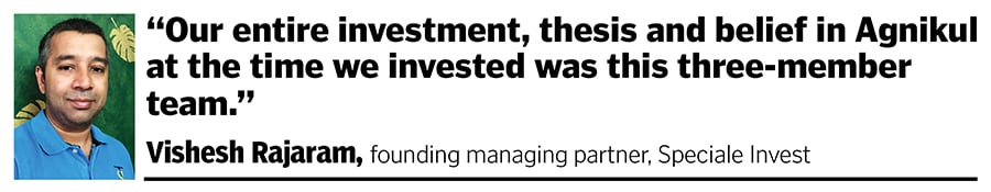 “Our entire investment, our entire thesis and our belief in Agnikul at the time we invested was this three-member team, or rather two-and-a-half," recalls Rajaram, whose firm Speciale Invest gave Agnikul its first “institutional cheque"—as they say in venture capital parlance—in 2019.