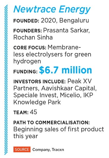 Prasanta Sarkar and Rochan Sinha co-founded Newtrace Energy in 2020 to develop a new class of “membrane-less" electrolysers to produce green hydrogen for industrial customers. Today, most of the 6 to 7 million tonnes of hydrogen produced in the country annually is from fossil fuels.