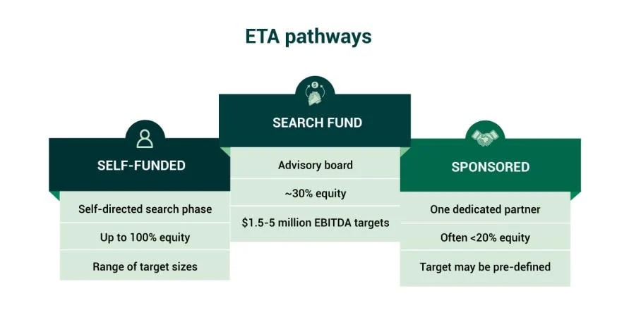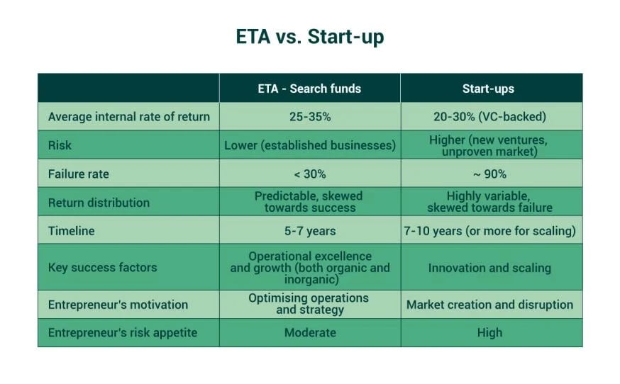 My students often ask: I want to be an entrepreneur, but should I do it through a start-up or ETA? The answer isn’t always straightforward, but I’ve noticed a pattern. Those who choose entrepreneurship through start-ups are typically passionate about a specific product or service and are mission-driven those who take the acquisition path are passionate about managing and improving businesses, regardless of industry.