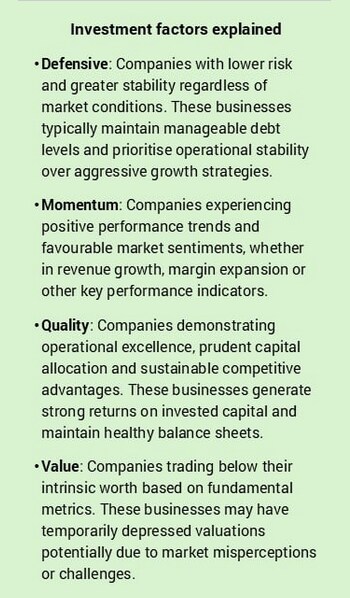 Unlike industry analysis, which groups companies by what they produce, factor analysis groups them by how they operate: their consistency, quality, valuation and stock growth trajectory. Fund managers (and even individuals) have used these specific characteristics in their investment strategies to isolate them from broader market movements, typically by creating specialised portfolios that buy companies strong in a particular factor while simultaneously selling those weak in it. This approach reveals which company attributes matter during turbulence, regardless of industry.