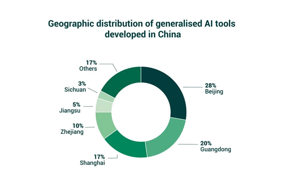 Professor Weiru Chen from China Europe International Business School, who spoke at the INSEAD AI Forum Asia where I presented last month, illustrated China’s vibrant AI ecosystem. He pointed to Hangzhou’s “Six Little Dragons", tech giants such as Alibaba, Baidu, ByteDance, Huawei and Tencent, as well as a growing number of AI start-ups. At the same time, and perhaps unsurprisingly, 83 percent of all Chinese generative AI tools originated from six provinces, with the top three accounting for close to 50 percent of output.
