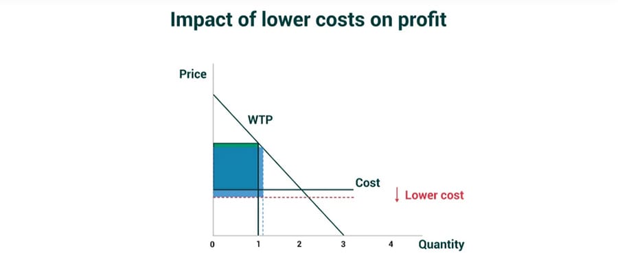 Figure 2: Cost reduction resulting in higher profits in the absence of demand changes.