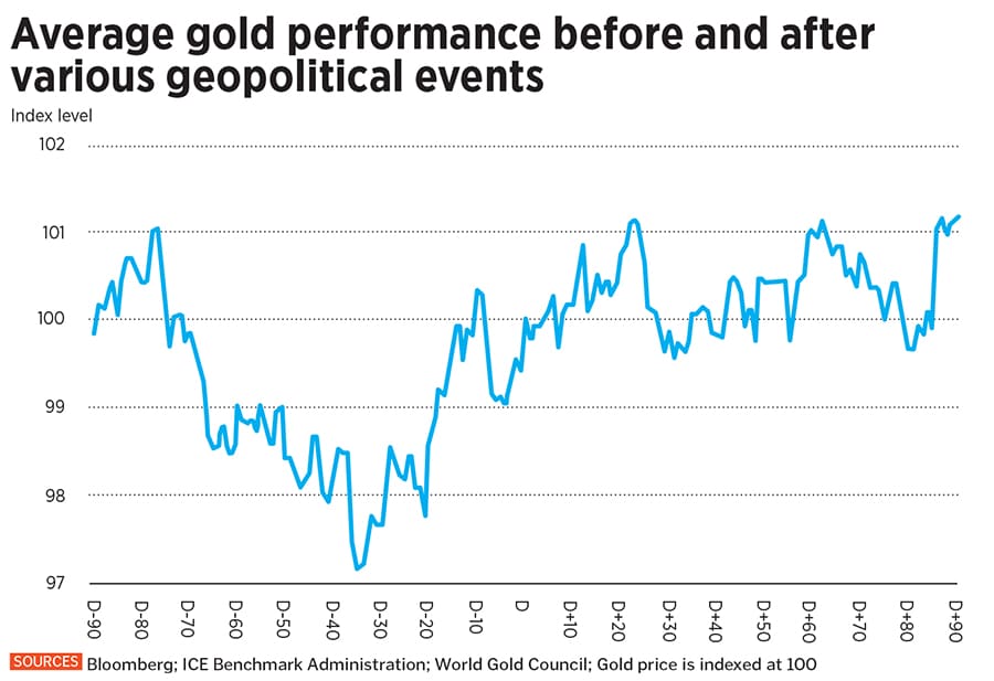 Events like the war in Ukraine represent a clear example of why gold is such an effective and well-established hedge against expected and unexpected market risks. Historical analysis suggests that gold has reacted positively to tail events linked to geopolitics and, despite price volatility, tended to keep those gains in the months following the initial event. In addition, gold trades in a deep and highly liquid market, with collective volumes surpassing $120 billion a day on average and tight bid-ask spreads. All these, combined with the fact that bullion carries no credit risk, makes gold a sought-after safe haven asset.