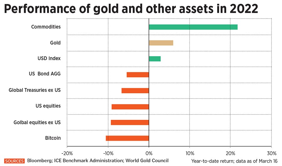The yellow metal has outperformed the US dollar as well as global bonds despite Covid-19 and the invasion of Ukraine by Russia, Juan Carlos Artigas, global head of research, World Gold Council writes