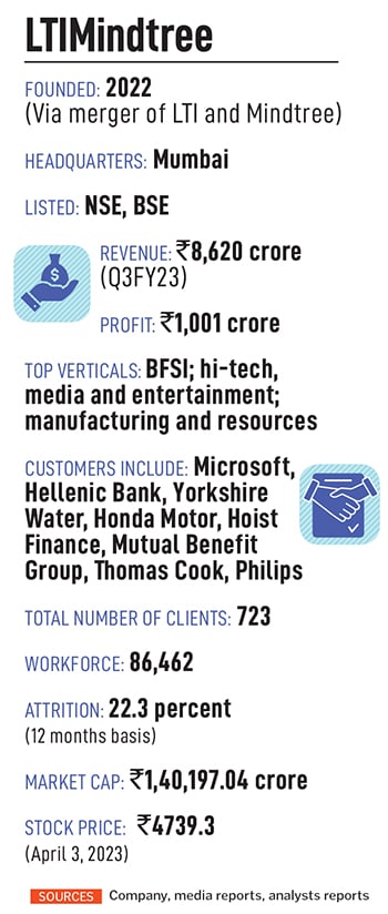 The plan now is to tap the combined strengths of LTI and Mindtree to step up the effort in each of these programmes. And L&T’s connects around the world are a big asset, says Chaturvedi, who, along with L&T’s CEO and MD SN Subrahmanyan, did a whirlwind tour meeting 55 customer CEOs in two weeks.