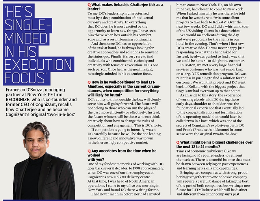 “The vision that we have laid out for LTIMindtree is we want to help our clients’ businesses to grow faster, and to take their businesses to the future… together," Chatterjee says.