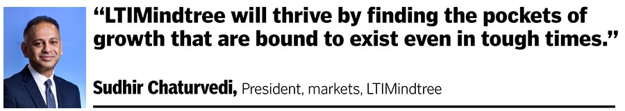 Chaturvedi says LTIMindtree will thrive by finding the pockets of growth that are bound to exist even in tough times. For example, he expects verticals, including banking and financial services and energy and utilities, to continue to invest in tech and tech services. LTIMindtree is gearing up through four programmes of growth, he says.