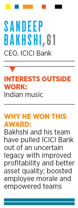 “Bakhshi has successfully led a positive cultural transformation at ICICI Bank. As a leader, he has a very humble and low-profile approach," says independent banking expert Hemindra Hazari, who publishes his writings on Singapore-based research platform Smartkarma. Shriram Subramanian, founder and managing director of InGovern Research, says: “Bakhshi has changed the work culture of the bank, and ensures that there is a greater level of scrutiny of borrowers. He prefers to be behind the limelight and has let the numbers speak for themselves."