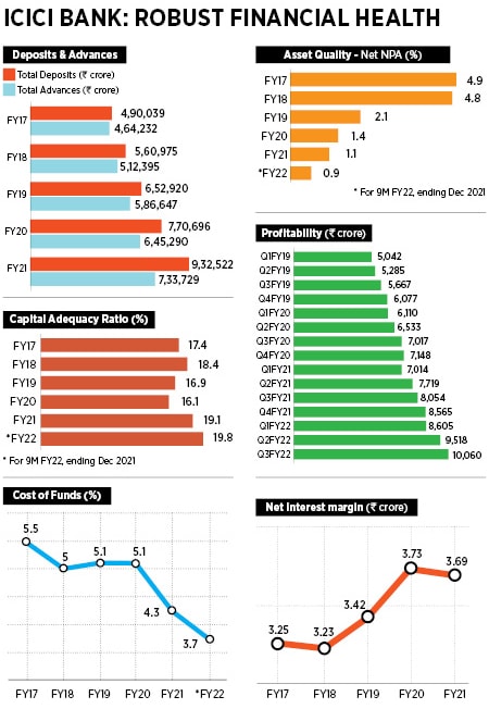 Investors have reposed faith in the bank’s management: The ICICI Bank stock has risen 123 percent to ₹698.3 on March 3, 2022 at the BSE, from a level of ₹313.35 when Bakhshi took charge. Not being promoter-led, foreign investors hold a 45 percent stake, domestic institutional investors about 44 percent (including LIC and SBI Mutual Fund) and public the balance 10 percent.
