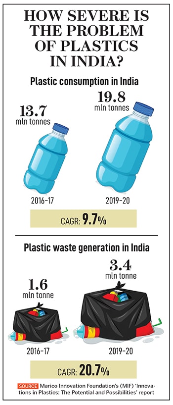 Consumption of plastics, on the other hand, was at 19.8 million tonne in 2019-20 and growing at 9.7 percent. Clearly, plastics are irreplaceable.
