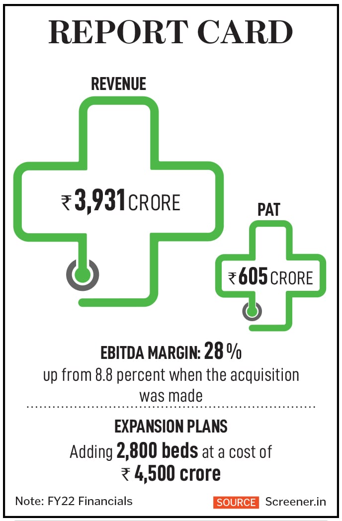 At ₹66,000 revenue per bed per night, Max Healthcare claims to have the best industry metrics among its competitors. Apollo, which has 10,500 beds across 74 hospitals, registered revenues of ₹14,663 crore in the year ended March 2022. For Max, the numbers were ₹3,931 crore for 3,400 beds across 17 hospitals. Apollo’s profit after tax in the year ended March 2022 was ₹1,108 crore while for Max Healthcare the numbers were ₹605 crore. This despite the fact that 30 percent of beds at Max Healthcare are for government business where payments are routinely delayed.