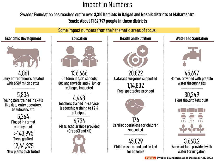 Swades Foundation has been providing grassroots interventions related to education, skilling, health care, water security and livelihoods to the people across various villages in Nashik, Maharashtra, since 2019. They had started with the Raigad distrct a decade ago