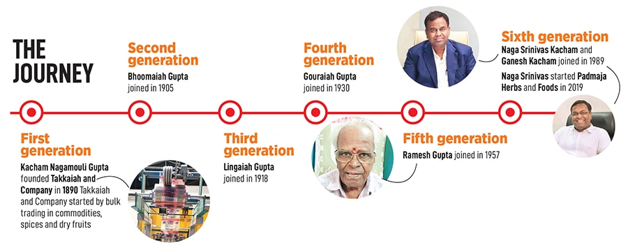 Takkaiah and Company, Delicious, Swastik, Srilola, Haradin, Nufasal & McKinsey… an intriguing element binds all of them together. To decode the mysterious ingredient, let’s go back to 1890 when Kacham Nagamouli Gupta founded Takkaiah and Company in Hyderabad. The first-generation entrepreneur started bulk trading in commodities, spices and dry fruits. Over the next few decades, the family ballooned, subsequent generations joined the venture, and Takkaiah and Company added to its clout. The story remained the same post-Independence.