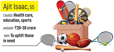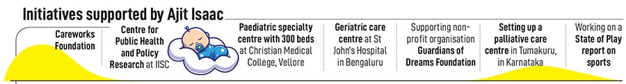 Health care is an area that Isaac contributes to out of his personal wealth. The Covid-19 pandemic was an eye-opening experience, where the lacuna in India’s public health system became evident. Says Isaac, “Seeing the situation, I felt that rather than complaining, it was time to actually do something about fixing public health care systems in India." He realised that our investment in public health research and institutional work was not proportionate to the population of India. This led him to collaborate with the research institute, Indian Institute of Science (IISC), to set up a Public Health Education centre. For the same, he has donated ₹105 crore from his personal wealth. “The hope", he says, “is to turn it into India’s premier Centre for Public Health and Policy Research at IISC."