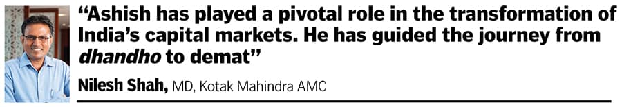 “Ashish bhai has played a pivotal role in the transformation of India’s capital markets. He has guided the journey from dhandho to demat, from payment crises to reliable settlements and from open-cry trading to electronic platforms. His contributions have been truly foundational by helping convert what was once perceived as a gambling den into a trusted centre of excellence,” says Nilesh Shah, MD, Kotak Mahindra AMC.
