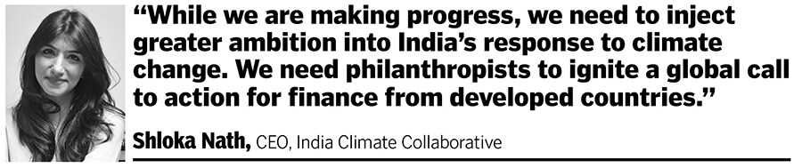Another issue for philanthropic capital for climate action is the highlighting of an investment outlay of $10 trillion for India to reach net zero carbon emission by 2070. “The framing of the problem in terms of temperature and carbon has not allowed us to see how it relates to our daily lives, governance policies, etc," Shisodia asserts.