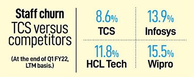 That said, closing the perception gap with Accenture or IBM’s IT services business is still “work in progress", the CEO says. “That’s the whole thrust that we are trying to do in communicating TCS’s capabilities to its clients. There’s a lot more of business centricity and business value in the work that the company delivers, which doesn’t necessarily get articulated that way."