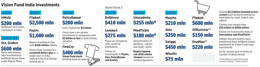 According to VC funds who share common captable and investment bankers who have pitched clients and raised capital from them, SoftBank 2.0 is a better version, with more stability. “There is a method to their madness. They are easily sitting on 1.5x to 2x returns on their investments. They have a conscious strategy of chasing deals in the used-car space (which they are yet to close) and SaaS companies which are predictable money-makers," says the managing partner of a large investment banking firm on condition of anonymity.