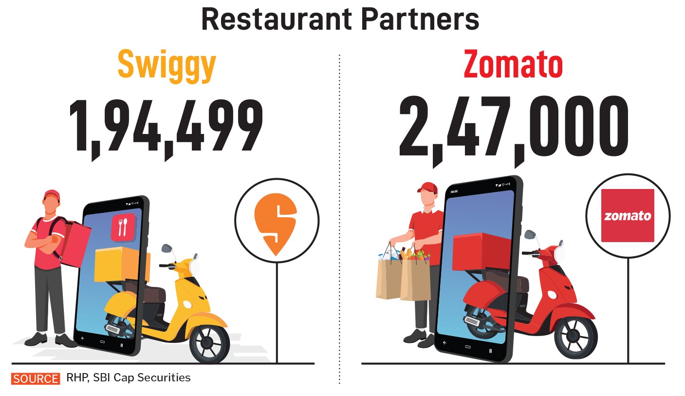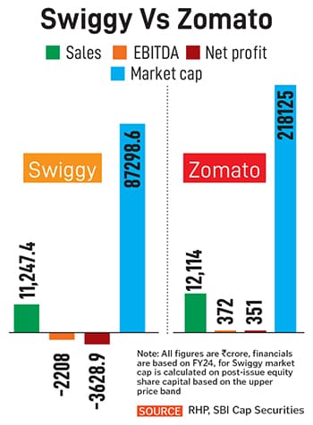 Even as Zomato celebrated arch rival Swiggy’s debut in the Indian stock markets on November 13, exemplified as two men in their signature orange and red T-shirts looking at the iconic BSE building on Dalal Street Mumbai, the reality is distinctly different.