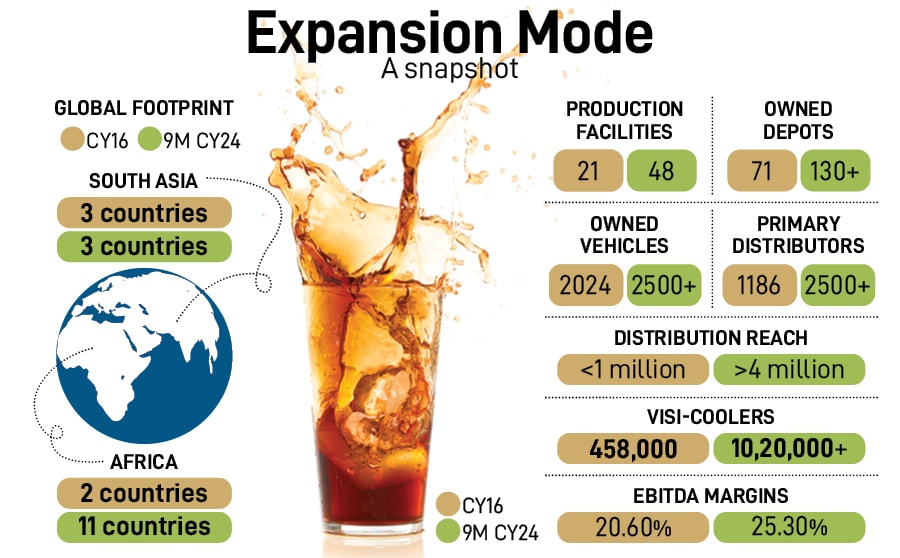 “Varun Beverages has been growing its capacity for the last 25 years. They have been entering new territories in India and Africa," Doshi says. “It enjoys economies of scale, its distribution network, technologically advanced plants, infrastructure… these are strengths that the competition does not have."