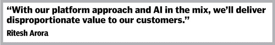 That said, “we want to build a high-growth business. Growth is accelerating, and we want to keep doing that for the next three years. Get to about 30 to 40 percent growth rate", Arora says.