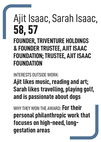 Ajit and Sarah Isaac’s personal philanthropy is targeting areas that fall outside the purview of conventional CSR initiatives, as well as government attention