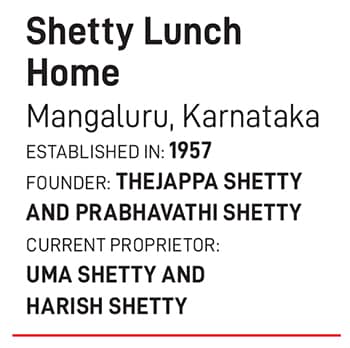 Both Shetty Lunch Home and its famous chicken ghee roast have rich legacies. What started as Buntara Matthu Naadavara Ootada Mane in 1921 by Kadri Subbayya Shetty in Kundapur, Udipi, is now Mangaluru’s famous Shetty Lunch Home, a name that the place got when Shetty’s son Thejappa Shetty and his wife Prabhavathi, who created the special ghee roast recipe of the restaurant, took over the place in 1957. Today, the family’s fourth generation, Uma Shetty and her husband Harish, run the restaurant.