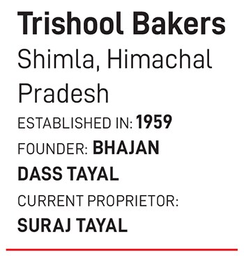 In 1946, Bhajan Dass Tayal established a workshop in Shimla to make breads. He would go door-to-door around the city to sell them. Over a decade later, after saving up money every year, he set up Trishool Bakers in one of the city’s prime locations. With only one branch in the city, and the third generation of the family running it, Trishool is Shimla’s oldest bakery serving the best Parisian delicacies. It is famous for its biscuits, eclairs, pastries and other such items. According to actor Preity Zinta who was born and raised in Shimla, pastries from Trishool Bakers serves the “best pastries in the world".