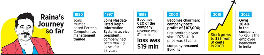 Ebix’s meteoric rise in India is staggering. But so is the stratospheric story of the man behind it. Raina started his career in 1990 when he joined Mumbai-based Pertech Computers (PCL) as management trainee. In the first year, he emerged as the second best sales person in the organisation by clocking a hardware sales of Rs 31 crore. People started taking note. “I was one of those very cocky guys who felt that I could succeed at anything," he recalls.