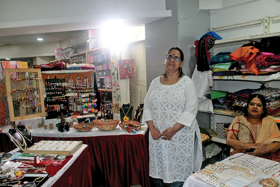 A business owner at the home and fashion accessories exhibition organised by the deAsra Foundation in association with Grahak Peth, Pune, in July 2022
