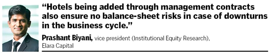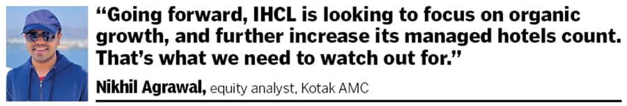 Experts agree that IHCL’s asset-light model has been highly effective. “The aggression in adding hotels under management contracts will ensure a healthy year-on-year [y-o-y] increase in management fees for the next three to five years," says Prashant Biyani, vice president (Institutional Equity Research), Elara Capital. “Hotels being added through management contracts also ensure no balance-sheet risks in case of downturns in the business cycle and they improve return ratios."