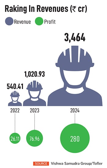 In FY24, Vishwa Samudra Engineering, which accounts for over 95 percent of the group’s revenues, earned Rs3,180 crore. By FY27, it is looking at revenues of Rs12,000 crore, which could go up to Rs30,000 crore by FY30
