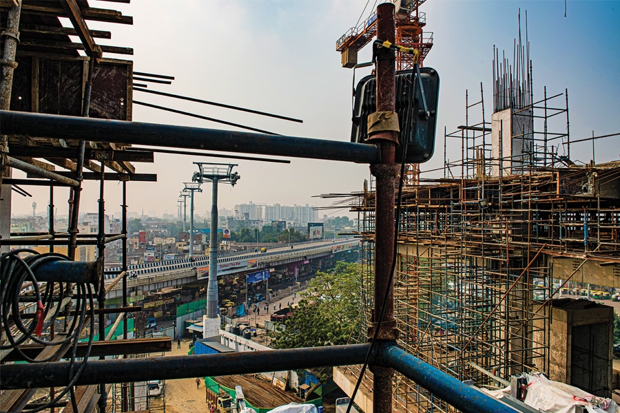The construction site of Vishwa Samudra Group’s urban ropeway project in Varanasi that spans 3.85 km, with a passenger capacity of 96,000 per day