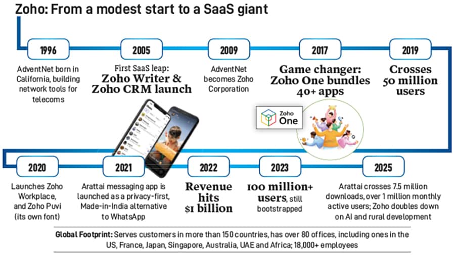 Zoho’s strategy seems to be evolving in the right direction, and will hold it in good stead. As AI becomes integral to SaaS, companies with strong in-house R&D are better positioned to lead the next wave of innovation, says Swati Muraka, principal at Bertelsmann India. “Companies like Zoho are well positioned to leverage AI in their stack since AI is a technology that SaaS companies will also use in their products to create AI features,” she says.