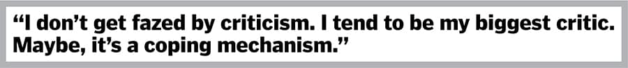 I don’t get fazed by criticism. I tend to be my biggest critic. Maybe, it’s a coping mechanism. But I don’t let anyone else be a harsher critic of me than myself. That’s how I try to centre myself and stay balanced. I know there are things that I don’t know and there are things that I know. When people are saying something, you have to constantly keep figuring out because all noise is not noise. People will say 10 things about you and even if it is a lot of noise, there may be one or two things that can be interesting. Maybe 20 percent of it is quite helpful… maybe that part I can learn and get better. So, yeah keep it (criticism) coming. As far as the rest (80 percent) is concerned, it’s okay. People are going to say stuff. You have to stay true to yourself. I don’t try to get energy out of proving others wrong. You have to do the right thing. Every time you have a choice.