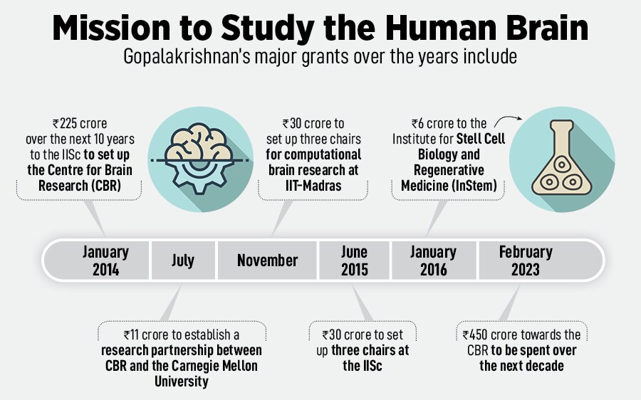 Senapathy “Kris" Gopalakrishnan is spending hundreds of crores to study the human brain. He has earmarked Rs750 crore towards research over the next decade, through the Centre for Brain Research at the Indian Institute of Science (IISc) and the Centre for Computational Brain Research at IIT-Madras. The latter is undertaking cellular-level image mapping of the brain, which is the first of its kind in the world.