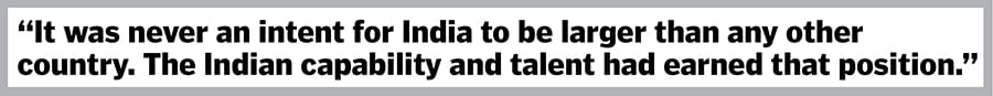 Our plan was to make use of the incredible Indian talent here to support our global business years ago. Over the years, what has happened is the development of an incredible two-way street where that Indian talent and Indian capability, which is part of Boeing India, has earned its scale, size, and work statement to the extent that now it has certainly grown significantly from the time that we started it. It was never an intent for India to be larger than any other country. It is that the Indian capability and the Indian talent had earned that position.